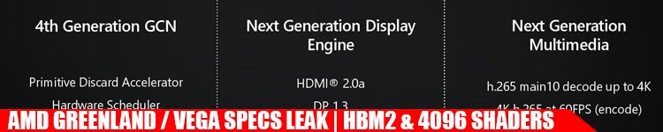 You might take issue with the number of shaders the Vega / Greenland flagship packs into a 14nm FinFet process. The 28nm Fiji (AMD’s Radeon Fury X card which comes loaded with 4GB HBM1) also offers 4096 shaders – so what gives?