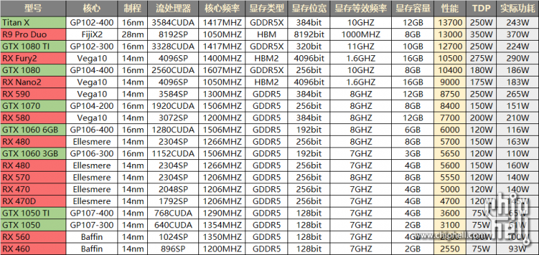 Finally, a chart has popped up on ChipHell forum – though there is a lot of questions regarding the validity of its accuracy. Essentially it lots various GPUs from both Nvidia and AMD with their respective performance. Graphics Card, Architecture, Process, Stream processors, Clock speed, Memory type, Memory Bus Width, RAM clock speed, VRAM, Performance, TDP and finally Actual TDP.