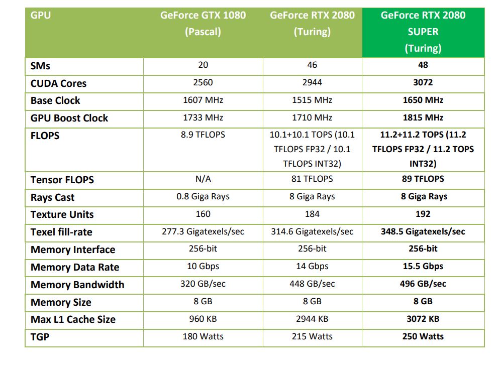 The Radeon RX 5700 and RX 5700 XT’s launched in July and forced Nvidia’s hand to launch the GeForce Super series, essentially improving the price/performance ratio of Nvidia’s GeForce 20 series versus the launch products. Back when I first leaked that there’d be a Turing Refresh coming, I had heard that Nvidia was planning to simply crank the clock speeds of the memory for the GeForce 20 refresh, but in the end, we also saw higher CUDA core counts and GPU clocks too… a potential sign Nvidia felt that a bit of extra bandwidth wouldn’t be enough to fend off Navi 10.