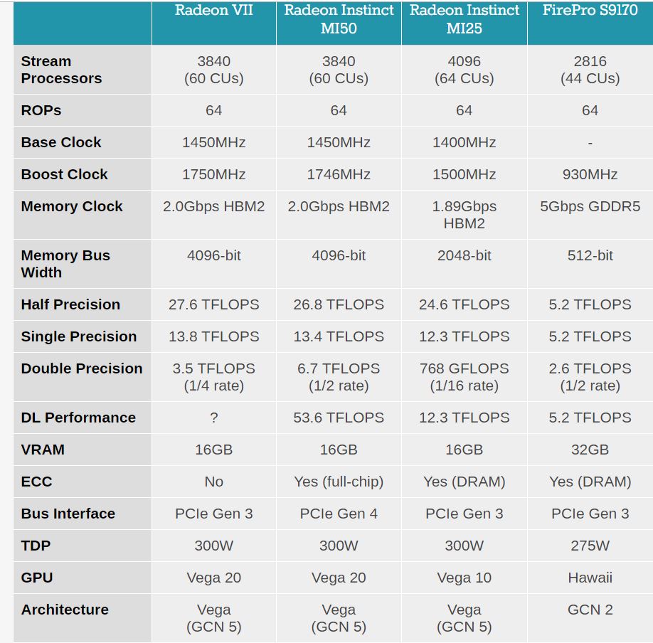 And while this is getting slightly off-topic, it’s worth remembering that the Radeon VII GPU uses a Vega 20 die that’s 331mm2, far larger than the RX 5700 XT’s Navi 10 die (251mm2). But also remember that the number of CU for Radeon VII was just 60 (compared to 64 of the Vega 64), the same as the Radeon Instinct MI 50, albeit with Radeon VII featuring ¼ double precision (3.5 TFLOPS) compared to the MI 50’s 6.7 TFLOPS (½ its single precision).