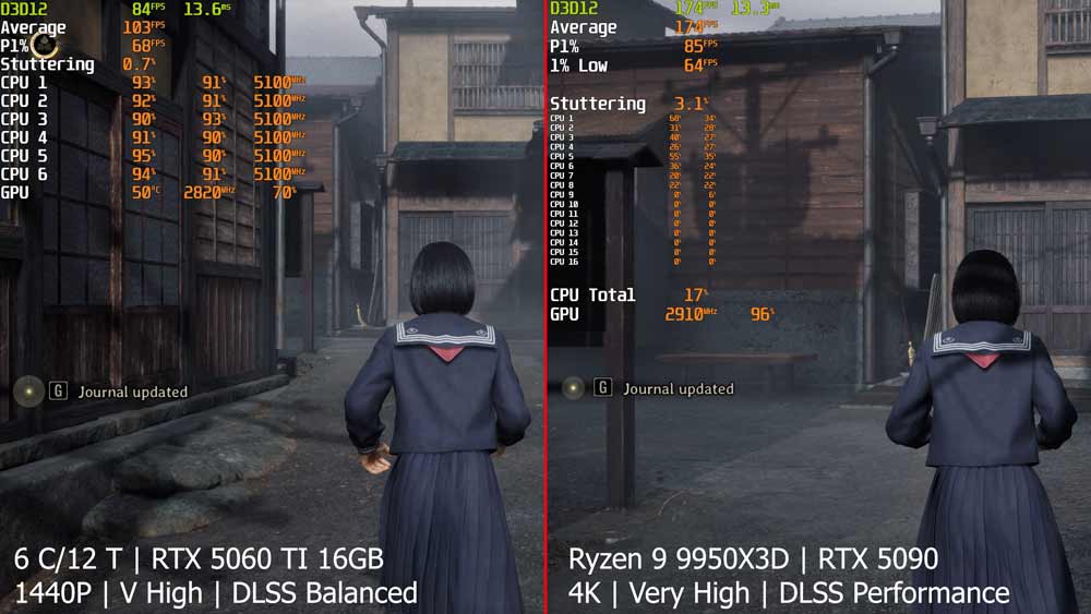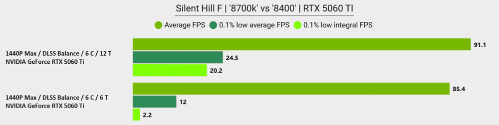 What’s the message here then? Well, for me, I could still play Silent Hill F with the lower-end CPU (even the 8400 I think) just fine once I felt immersed enough, but it does definitely become noticeable. The more CPU grunt you’ve got, the less you’ll spot the stuttering.
