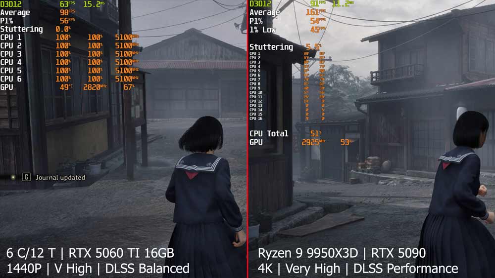 What’s the message here then? Well, for me, I could still play Silent Hill F with the lower-end CPU (even the 8400 I think) just fine once I felt immersed enough, but it does definitely become noticeable. The more CPU grunt you’ve got, the less you’ll spot the stuttering.