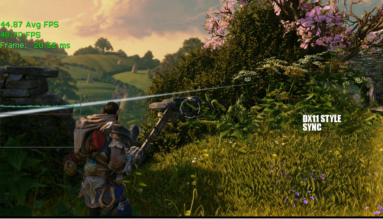 Finally, we’ll show UAV barriers always happening, exactly how DirectX 11 would do it, regarding its synchronization. Frame rate was fairly solid, and hitting the mid 40FPS range, and sometimes up to 50s. Switching to a more optimal UAV (unordered access views) patterns the frame rate jumps up to 64 FPS (obviously depending what’s going on at the time). A UAV can be thought of as a little bit like a Pixel Shader render target, but there are a number of key differences, mostly that they aren’t necessarily in a specific order and support atomic operations. To go more into detail of UAV’s is out of the scope of this article, so look for more info here.