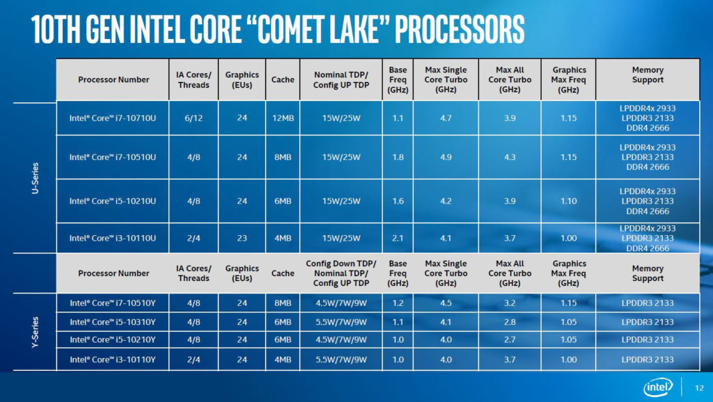 Intel’s 10th gen Comet Lake, from i3 all the way up to i7, features –