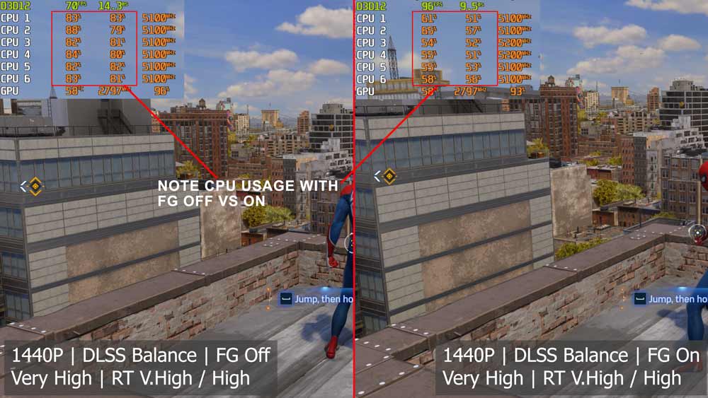 As for the I7-8700K and whether it’ll bottleneck – the answer is generally no, providing you crank the settings up. As I demonstrated in both the screenshot above and the accompanying video, some games certainly push things, but the experience is still pretty damn excellent. Spider-Man 2’s large open environments challenge the I7-8700K, particularly with Ray Tracing enabled, but enabling DLSS frame generation does bring the CPU usage down a little, since FG gives the CPU some extra breathing room. The game is perfectly smooth and playable, a totally different league from what you experience with the GTX 1080.