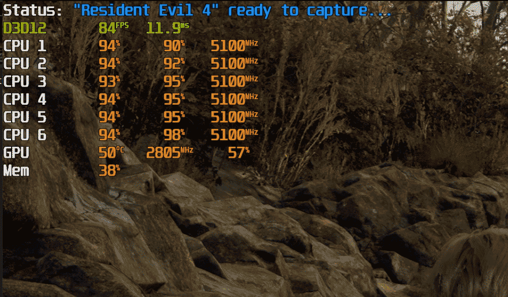 Don’t worry, though, our upgrade isn’t wasted. We soon reduce the CPU bottleneck and better leverage our GPU by enabling Ray Tracing (highest setting), 6GB textures and using the pinnacle settings available, the game maintained an average of over 90. This is tested near the start of the game, in the infamous ‘siege’ section of the village. I should note that CPU does seem to hold things back a little, as you can see above.
