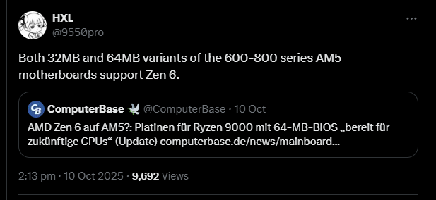 But there’s some good news everyone (admit it, you heard that in his voice) as it was up until now unclear if both 600 and 800 series motherboards would support Zen 6. But HXL on Twitter, who you should remember if you’ve watched our videos for a while, has stated that both the 32MB and 62MB variants of these boards indeed have Zen 6 support.